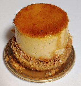 リンゴの入った土台の上に、プリンのようにもみえるシブーストクリームが乗っています。