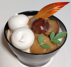 バニラムースとほうじ茶のムースを基礎に栗のあんと栗。