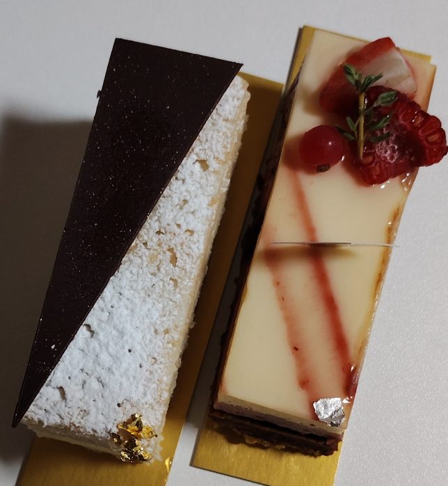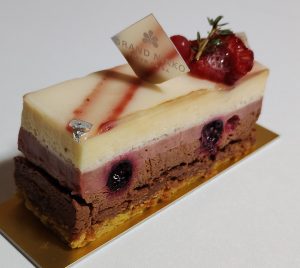 フランボワーズの香りがありつつも、土台にピスタチオ生地を使っているので重層的な香りを楽しめます。