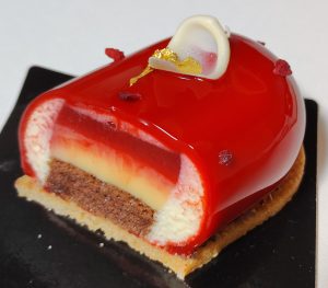 表面のグラサージュ仕上げも鮮やかで味も美味しく、ベリー系のケーキとしては食べやすいと思います。