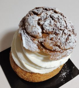 上側にちょっとザクッとしたクッキー生地をのせたシュー生地。